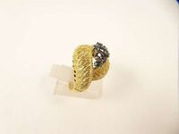 Bague en or 750 mil poli et amati retenant un pavage de saphirs ronds. (TDD : 53). 7,8 g.