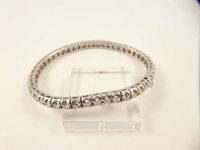 Bracelet ligne articulé en or gris 750 mil serti de diamants brillantés (Longueur : 17,7 cm). 23,7 g.