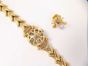 Pin's abeille en or 750 mil (saphir rose, perle de culture) (système métal) (hauteur : 1,8 cm). 3,7 g. + Montre-bracelet de dame en or 750 mil, mouvement à quartz, bracelet et boucle en or 750 mil. (Usures). 33,7 g. brut