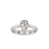 Bague en or gris 750 millièmes ornée d'un diamant piriforme.Tour de doigt : 54 1/2Poids brut : 4,6 gAccompagné d'un certificat diamant du HRD n° 06009318031 du 21/04/2006 précisant- Masse : 1,00 ct- Couleur : H- Pureté : VS2- Fluorescence : aucune - Dimensions : 8,86 x 5,62 x 3,41 mm