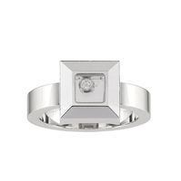 CHOPARD, modèle « Happy Diamonds ». Bague en or gris 750 millièmes, le centre de forme carrée renfermant un diamant rond de taille brillant mobile sous verre.Signée et numérotée.Tour de doigt : 53Poids brut : 12,0 g