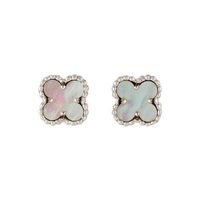 VAN CLEEF & ARPELS, modèle « Sweet Alhambra ». Paire de boucles d'oreilles en or gris 750 millièmes chacune de forme quadrilobée, ornée de nacre. Système pour oreilles percées. Signées et numérotées.Hauteur : 0,9 cmPoids brut : 2,9 gAvec un écrin de la Maison VAN CLEEF & ARPELS renfermant un miroir.