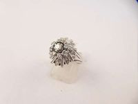 Bague fleur en or rhodié 750 mil sertie de diamants et diamants 8/8. (TDD : 52). 5 g.