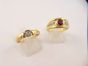 Deux bagues en or 750 mil (diamant, rubis, diamant