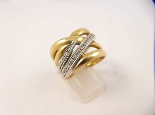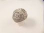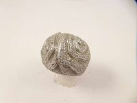 Importante bague boule en or gris 750 mil à décor de roses stylisées pavées de diamants (TDD : 57). (Pierres manquantes). 30,2 g.