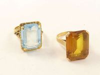 2 bagues en or 750 mil ornées de pierres imitation égrisées. 19,2 g. brut