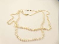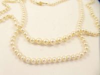 2 colliers de perles de cutlure, un en chute et un de perles de culture d'eau douce, fermoirs en or 750 mil. 31,2 g. brut