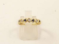 Bague en or 750 mil tressée ornée alternativement de saphirs et de diamants (Tdd : 52). 1,5 g.