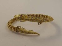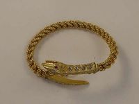 Bracelet en or 750 mil torsadé figurant un serpent rehaussé de roses et pierres de couleur. 69,9 g.