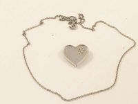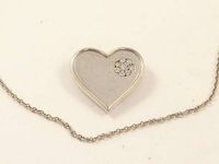 Collier maillons forçat en or gris 750 mil, pendentif coeur en or gris 750 mil rehaussé de diamants. 6,8 g.