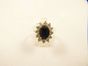 Bague pompadour en or 750 millièmes centrée d'un saphir ovale dans un entourage de diamants brillantés (TDD : 47). Poids : 3,9 g.