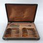 MAISON SAVARY, Période Art Déco : Service à glace en argent et vermeil 950 mil à spatule piriforme à gradins et rouleaux comprenant 18 petites pelles et 1 pelle de service. Chiffrées OM. Minerve 1er titre et Poinçon de Maître. Poids : 650 g. Légères rayures d’usage. TBE. Ecrin de détaillant d’origine en l'état.