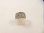 Bague bandeau ajourée en or gris 750 mil sertie de diamants 8/8. (TDD : 52). 5,2 g.