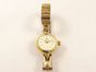 Bracelet-montre de dame BUCHERER en or 750 mil, petit boîtier rond, cadran champagne à index doré, mouvement mécanique, sur bracelet élastique en métal. 22,7 g. brut