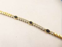 En parure avec le N°175 : Bracelet 2 ors orné de saphirs ovales et de diamants brillantés en serti clos (longueur : 18 cm environ). 17,1 g.