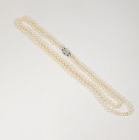 Collier à double rangs de perles de culture (pouvant se dissocier en 2 colliers) avec fermoir en or gris 750 mil. (Longueur : 49 cm environ). 42,6 g. brut