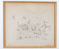 Jean-Jacques SEMPE (1932) "La réception" Eau-forte, signée en bas à droite et numérotée 66/200 en bas à gauche. Dimensions (à vue) : 15 x 17,5 cm. (Encadrée) (Frottement sur le côté droit).