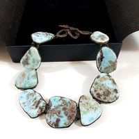 Sylvie TISSOT Collier constitué de galets de larimar sertis sur bronze patiné. Pièce unique, 2003. (Longueur : 37 cm environ). On y joint un certificat d'authenticité de la Galerie Cipango. (Avec une boîte).