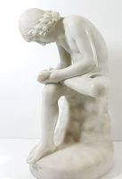 Guglielmo PUGI (1850-1915) d'après l'Antique "le Tireur d'épine" ("Spinario") Sujet en marbre blanc , signé sur le côté droit "Pugi". Hauteur : 38 cm.
