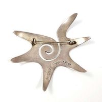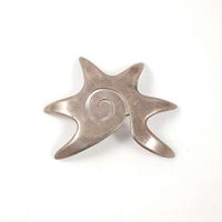 MARICELA (Ysidro Garcia, actif 1943-1986), broche en argent 800 mil. à motif d’étoile centrée d’une spirale. Travail mexicain. Signée. (Longueur : 6 cm environ). (Quelques rayures). 13,3 g.