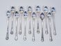 TCHECOSLOVAQUIE, Années 1930 : suite de 12 cuillers à mazagran en argent 800 mil., modèle filet contour, chiffrées IM en lettres gothiques sur l’intérieur. Poinçons tchécoslovaques de la période 1929-1941 de titre 5 (800 mil) et d’orfèvre VJ. Poids : 581.5 g. L. 20.3 cm.