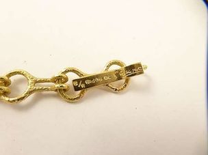 1 000 / 1 500 €Collier G. BRAQUE en or 750 mil amati à maillons fantaisie ajourés, signé et numéroté 8/8. (Longueur : 49,5 cm). 37 g.