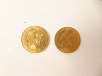 2 pièces de 20 FRF en or 900 mil. (Usures) .12,9 g.