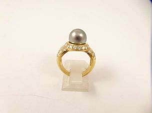 Bracelet jonc ouvrant 2 ors 750 mil orné d'un pavage de diamants 8/8 (diamètre : 6 cm). 15,2 g.