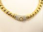 Collier deux ors 750 mil centré d'un diamant brillanté de 0,30 carat environ dans un pavage de diamants brillantés. (Longueur : 43 cm environ). 51,1 g.