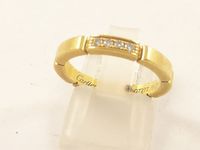 Anneau en or 750 mil segmenté rehaussé d'une ligne de diamants, signé CARTIER (TDD : 51). 4,2 g.