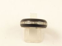 Anneau en or gris 750 mil centré d'une ligne de diamants insérée entre 2 lignes d'émail. (TDD : 54,5). 6,3 g.