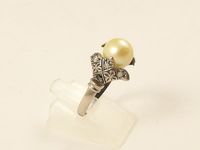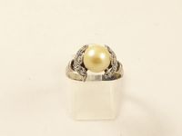 Bague en argent 800 mil centrée d'une perle de culture rehaussée de diamants 8/8. (Manque pierre). (TDD : 57,5). 4,1 g. brut