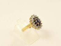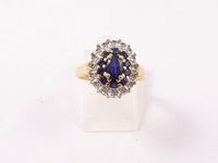 Bague fleur en or 750 mil centrée de saphirs entourés de diamants 8/8 (TDD : 53). 4,2 g.