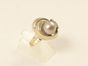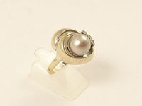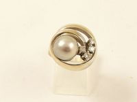 Bague volute en or 750 mil centrée d'une perle de culture rehaussée par 4 diamants (TDD : 52). 11,7 g. brut