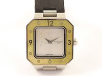 Montre-bracelet de dame en acier, boîtier carré à pans coupé, lunette nacrée à index diamants et chiffres arabes, cadran argenté muet parsemé de diamants, tour de bras en tissu, MAUBOUSSIN "Amour le jour se lève", mouvement quartz