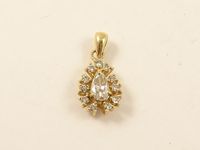 Pendentif en or 750 mil centré d'un diamant taille poire entouré de diamants brillantés. 2,5 g.