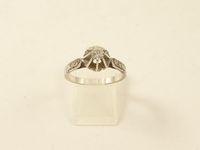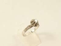 Solitaire en or gris 750 mil orné d'un diamant (environ 0,20 carat) épaulé par des diamants 8/8 (TDD : 56,5). 3,5 g.