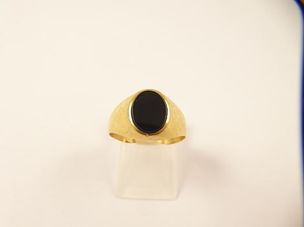 100 / 150 €Bague chevalière en or 750 mil ornée d'un onyx (TDD : 54,5). 4,7 g.