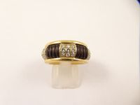 Bague ouverte BOUCHERON en or 750 mil alternée de bois d'amourette godronné et de pavages de diamants brillantés, signée et numérotée (parties en bois formant un anneau amovible) (TDD : 53) (cassures et manque à une partie en bois). 10,8 g. brut