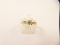 Bague solitaire en or 750 mil ornée d'un diamant brillanté de 0,25 carat environ, épaulé de 3 diamants brillantés de chaque côté. (TDD : 54). 2,9 g.