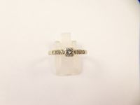 Bague solitaire en or gris 750 mil et platine 950 mil ornée d'un diamant brillanté de 0,20 carat environ épaulé de 3 diamants 8/8 de chaque côté (TDD : 58). (Eclat). 2,2 g.
