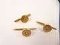 3 boutons de plastron en or 750 mil chacun serti d'un diamant brillanté dont 1 signé CARTIER (numéroté). 5,6 g.