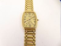 Bracelet-montre d'homme PRESTIGE en or 750 mil, boîtier tonneau, cadran doré à index en chiffres arabes avec cadran secondaire, mouvement à quartz, sur bracelet et fermoir à cliquet en or 750 mil. (Longueur : 23 cm). 61,4 g. brut