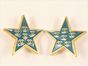 CHANEL par Karl Lagerfeld Collection Prêt-à-porter Printemps/Ete 2001 : Paire de clips d’oreille en métal doré émaillé bleu, siglé, figurant une étoile. Signée sur plaque. Hauteur : 3,1cm.