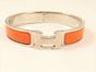 HERMES Paris made in France : Bracelet jonc ouvrant « Clic H » 12mm en métal argenté palladié émaillé orange. Diamètre : 6cm.