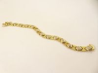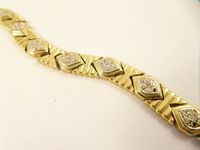 Bracelet en or 750 mil à motifs pavés de diamants brillantés (longueur : 20 cm environ). (Accidents, déformations, pierres manquantes). 26,1 g.