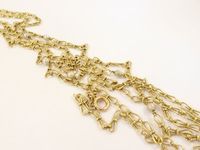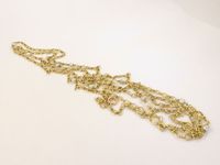 Chaîne de montre en or 750 mil ponctuée de perles de culture (longueur : 160 cm environ). (Usures). 39 g.