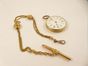 Montre de gousset en or 750 mil (bélière en métal), chaîne de montre en or 750 mil avec sa clé (système métal). (Chocs). 70,3 g. brut