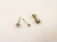 Pendentif en or gris 750 mil (diamant brillanté), 2 boutons d'oreilles en or gris 750 mil (diamant brillanté, rose). (Manque systèmes). 1,3 g.