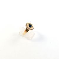 Bague à chaton ovale en or 750 mil. centrée d’un saphir taille ovale dans un double entourage de diamants brillantés. (TDD : 54). 5,9 g.